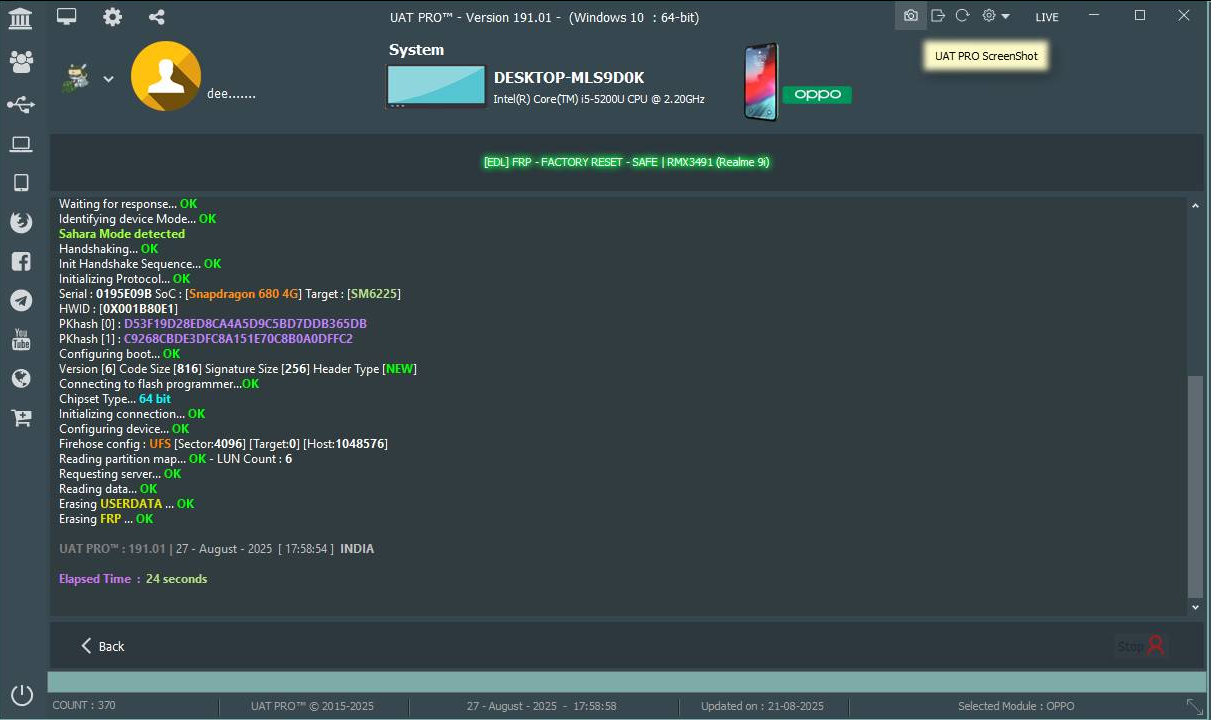 πŸ“° OPPO A31 one click unlock done in Universal Mode βœ…